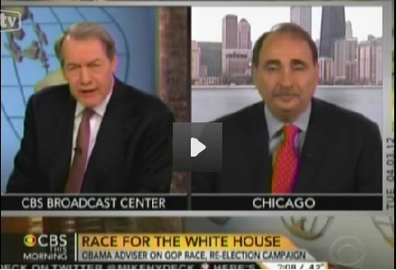 On Tuesday's CBS This Morning, Charlie Rose rolled over and deferred to chief Obama flack David Axelrod and his talking points defending the President's Monday rant against the Supreme Court and its deliberation on his health care law, along with its attacks on Mitt Romney. Rose tossed softball questions at Axelrod, such as, "Tell me what he [Obama] is saying when he talks about judicial activism."