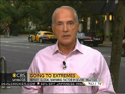 Andrews led the segment by highlighting the plight of Jeff Fisher, a farmer in Illinois whose crops are threatened due the recent heat. After outlining the La Nina/El Nino connection to the high temperatures, the CBS journalist turned to the results of the recent study from the National Oceanic and Atmospheric Administration: