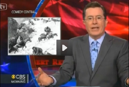STEPHEN COLBERT: Who cares? Pioneers opened up the West. Bain was just like the Donner Party. They ate the weak.