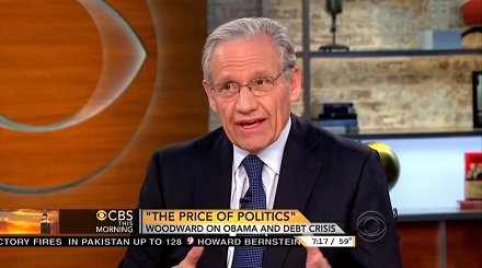 Anchors Charlie Rose and Norah O'Donnell brought on the Washington Post veteran to discuss his new book, "The Price Of Politics." O'Donnell hyped that "fiscal Armageddon, I think, is the word that has been used, and I don't think people get it. It certainly doesn't seem like the people in Washington - the lawmakers - get it....we're talking about trillions of dollars in spending cuts that become immediate; the expiration of all of the tax cuts for everybody, not just the wealthiest Americans - that the CBO has said will plunge this country into a recession. And is anybody in Washington doing anything?" Woodward replied with his "no one is pressing the candidates" lament.