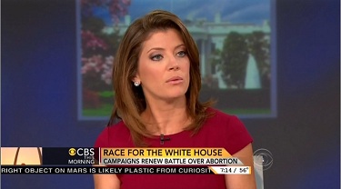 It should be pointed out that the CBS on-air personality took this same tack in her September 13, 2012 interview of Senator Rob Portman, where she insisted that "Republicans...are saying that Governor Romney stepped in it" in his attack over a statement issued by the U.S. embassy in Cairo, Egypt which condemned an anti-Muhammad video that sparked unrest throughout the Islamic world. Before the debate, she repeatedly sounded the death knell for the Romney campaign. Hours after Obama's lackluster performance, O'Donnell latched onto the left's attack on the Republican nominee's Big Bird line, labeling it a "silly thing to bring up." With this kind of a record, the CBS anchor has all the marks of an Obama campaign stenographer.