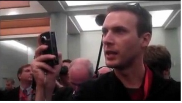 Gateway Pundit blog and Michelle Malkin's Twitchy site both reported on Saturday how Ryan Clayton, a far left contributor to DailyKos and Huffington Post, was escorted out a Friday night showing of the documentary, Hating Breitbart, in Arlington, Virginia, for his outbursts during the opening minutes of the film. Clayton actually makes an appearance in the movie, where he shouted bogus allegations of cocaine use and soliciting male prostitutes at Breitbart in 2011.