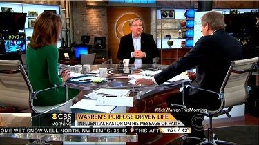 [CBS News Graphic: "Warren's Purpose Driven Life: Influential Pastor On His Message Of Faith"]