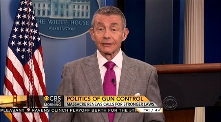 The CBS correspondent continued by highlighting that President Obama "said last night he would use all the power of his office to prevent a repeat of the tragedies like the Newtown massacre. The President supports renewing the ban on assault weapons, but he ignored the gun control issue in his first term. And when he ran for president...he tried to reassure gun owners."