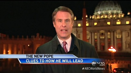 Substitute anchor David Muir introduced Moran's report by trumpeting "where the Pope stands on many of the most divisive issues facing the Catholic Church." The ABC correspondent then recapped some of the events of the pontiff's first full day as the Bishop of Rome, and gave a brief summary of his prior life and career, including how "before the priesthood, he loved chemistry, dancing the tango, and a young woman, who remembered the proposal he made her in a love letter." His "staunch traditionalist" label of the Pope came later in the segment.