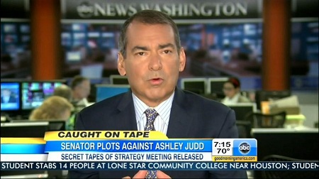 The following morning, on Good Morning America, Stephanopoulos introduced the second report from the correspondent by hyping "that startling secret tape revealing how the Senate's top Republican was planning to go after Hollywood star Ashley Judd if she ran against him. Senator Mitch McConnell is calling it the tape a dirty trick, asking the FBI to investigate where it came from."