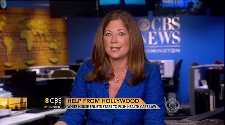 During his lead-in for Crawford's report, anchor Charlie Rose trumpeted how "the White House is launching a major push, with some big star power, to get the word out about the President's health care law." The CBS journalist then outlined that "these exchanges are, really, the main way that nearly 50 million Americans, who now are uninsured, are going to get coverage. So, if they don't sign up, this whole new health care system could be doomed. And that is why the Obama administration is turning to a traditional ally – Hollywood – for some help."