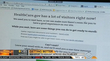 Wyatt Andrews noted how the White House "says that 375,000 people tried to shop on HealthCare.gov," but soon touted how "that high a number created some problems". The following morning, Major Garrett reported that "the challenges are not over" for the online health insurance clearinghouse [MP3 audio available here; video below the jump]