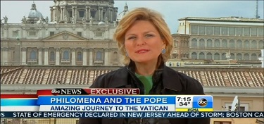The ABC journalist continued by gushing that the encounter between Pope Francis and Lee is "an ending not even Hollywood could write – fitting since Philomena is now known around the world from the Oscar-nominated movie bearing her name." She then played the first of two clips from her interview of the real-life Philiomena, where she heralded the movie: