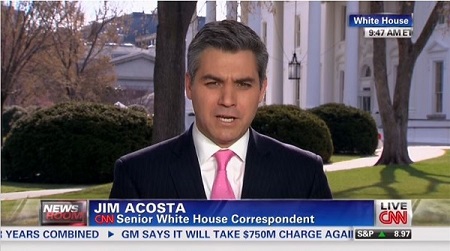 The correspondent later touted the development as "pretty big news over here at the White House. They're reacting with a lot of glee and happiness, I can tell you." Acosta and anchor Carol Costello also credited the President's Internet video with comedian Zach Galifianakis for part of ObamaCare's apparent success: [MP3 audio available here; video below the jump]