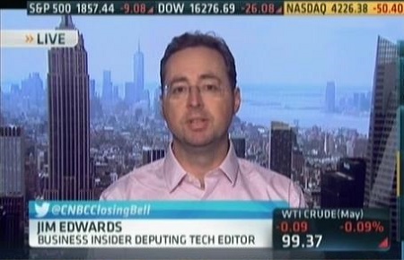 JIM EDWARDS, INVESTIGATIVE REPORTER, BUSINESS INSIDER: ...We should point out, to Brendan Eich's credit, he did not bring his politics into the workplace; and also, he voluntarily resigned. He wasn't fired. But think of it this way: this is a guy who is the head of the Firefox browser – conceivably would meet Apple CEO Tim Cook – Tim Cook being the head of the most important tech company on the planet probably. These two guys are in a room: one of them believes he has more rights than the other, and that the other guy has fewer human rights than he does. How is Tim Cook supposed to react to that? How is he supposed to deal with that? That's crazy.