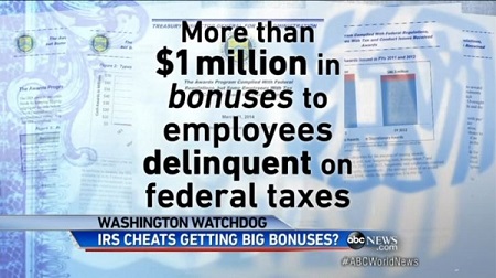 DIANE SAWYER: And in other news today, right after the tax deadline for so many of us, tonight, we are learning that some of the taxpayer dollars sent in had been paid to IRS agents who did not pay their taxes – and even so, were rewarded with bonuses. So what is going on here?