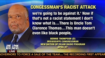 REP. BENNIE THOMPSON (D), MISSISSIPPI (from New Nation of Islam radio program, April 27): Mitch McConnell would have the audacity to tell the President of the United States – not just the chief executive, but the commander-in-chief – that 'I don't care what you come up with, we're going to be against it.' Now, if that's not a racist statement, I don't know what is.