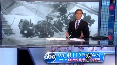 Friday's World News on ABC paid tribute to the 70th anniversary of the D-Day invasion of Normandy with an emotional look at one of the remaining veterans who survived the hellish landings on Omaha Beach. However, the Big Three newscast made a historical gaffe during anchor David Muir's introduction to the segment.