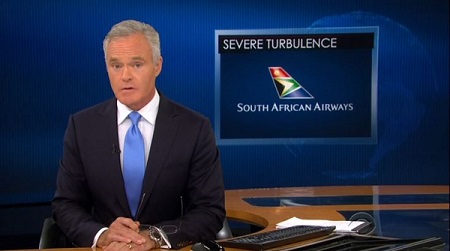 BRIAN WILLIAMS: In airplane news, a bad ride on a South African Airways flight from Jo'burg to Hong Kong – 20 injuries in a bout of clear air turbulence. Some passengers' heads cracked the overhead compartments – more proof you need to keep your seat belts fastened while seated, as they say.