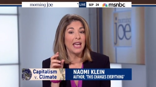 In that Sept. 24 interview, Klein was promoting her new book, “This Changes Everything: Capitalism vs. The Climate.” She claimed that “we have an economic system that has essentially waged war” on the planet.