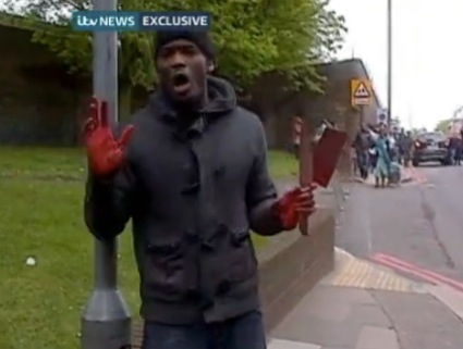 By contrast, the U.K. media seems to be calling the attacks what they are. The BBC (no right-wing media shop) reported that one of the attackers told a witness, “I killed him because he kills Muslims over there and I am fed up that people kill Muslims in Iraq and Afghanistan.” The BBC also said that “The Muslim Council of Britain said the murder was ‘a truly barbaric act that has no basis in Islam and we condemn this unreservedly,’” and noted that “At least two plots by Islamist extremists to kill soldiers in the UK have been foiled in recent years.”