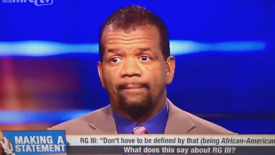 Cable sports network ESPN has suspended its commentator Rob Parker following his offensive racial tirade against Washington Redskins player Robert Griffin III. In a segment on yesterday’s First Take program, Parker said that the rookie quarterback was “not one of us” and that he was only “kind of black” because he is engaged to a white woman, is rumored to be a Republican, and has spoken in favor of racial neutrality, sentiments that the sports analyst derided as “cornball.”