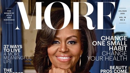More Magazine is a lifestyle magazine for women ages 30-65.  That’s quite an age spread, but what better way to convey the mythical “war on women” than through women’s magazines.  After all, there’s been an ongoing trend of women’s magazines entering into the world of politics.  Cosmo, Marie Claire and Glamour are all guilty of this, even endorsing candidates.  (Take a guess on which side of the political spectrum those candidates reside.) Which only makes sense that the entire July/August issue of More would be linked to the First Lady.