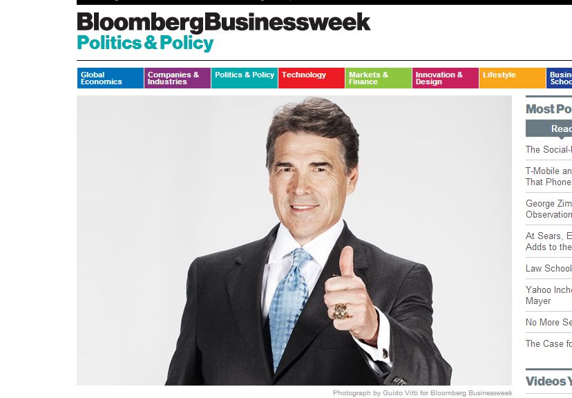 Bloomberg Businessweek ran an article in its July 11 issue, praising Perry’s handling of the Texas economy. In the article, entitled “Rick Perry, Texas's Star Business Recruiter, Will Be Missed,” Businessweek admitted that Perry excelled at “selling Texas as the best place in the nation to do business.” But many in the media will only miss the laughter they had at Perry’s expense.