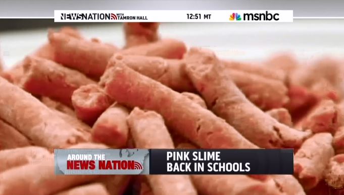 The MSNBC segment referred to a Sept. 9 Politico story about how some schools across the country are starting to add beef containing lean finely textured meat back into their cafeterias. The USDA-approved meat was pulled from some stores and schools after a media panic in 2012, led by ABC’s “World News with Diane Sawyer.”