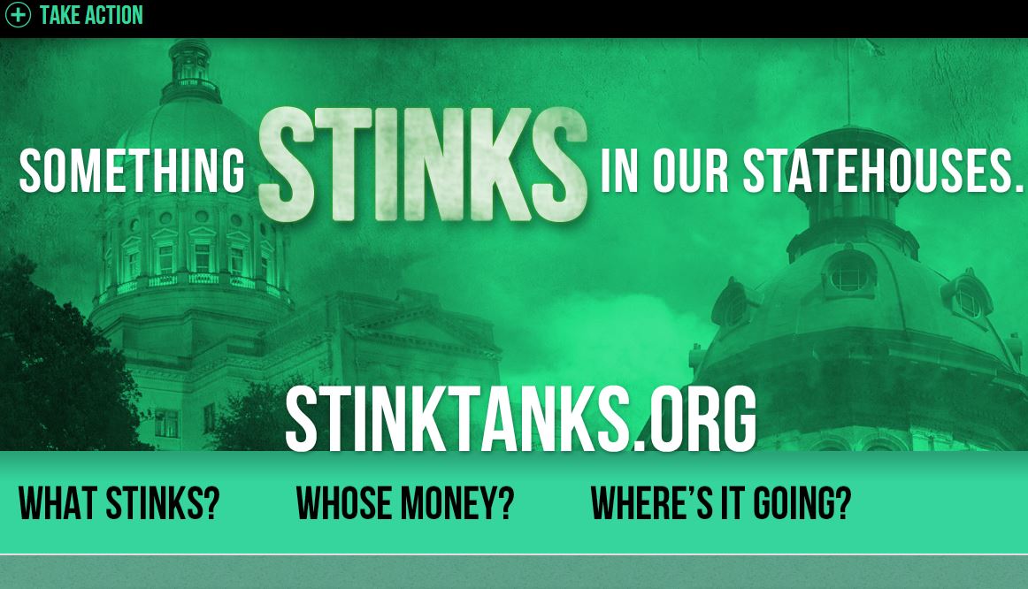 The hit job, labeled “Stink Tanks,” says that “SPN and its affiliates push an extreme right-wing agenda that aims to privatize education, block healthcare reform, restrict workers’ rights, roll back environmental protections, and create a tax system that benefits most those at the very top level of income.” The “about” page of the SPN website, describes SPN as “dedicated solely to improving the practical effectiveness of independent, non-profit, market-oriented, state-focused think tanks.”