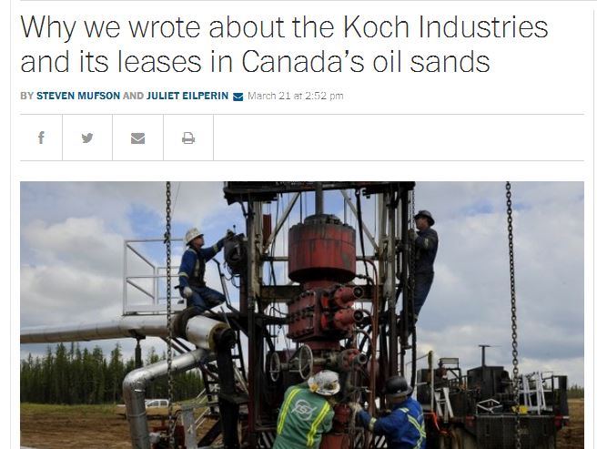 Steven Mufson and Juliet Eilperin attacked the Koch brothers in a Washington Post article on March 20, claiming that the Kochs had a financial interest in the Keystone Pipeline. The article insinuated that was the reason many conservatives were promoting the project.