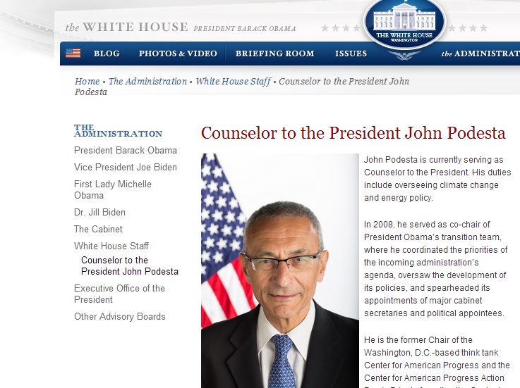 CAP is a policy writing and advocating organization, complete with its own media outlet, Think Progress. Podesta previously co-chaired the transition team when Obama first came into office, and was White House chief of staff under