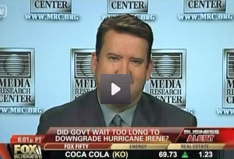 Tim Graham, the Media Research Center's Director of Media Analysis, appeared on the Fox Business Channel, Monday, to discuss the media's hyperbolic coverage of "Hurricane" Irene.