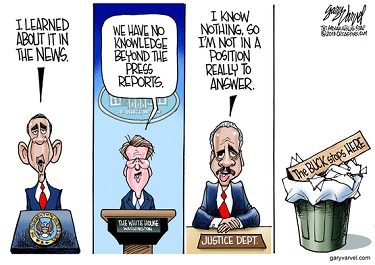 This week's batch of cartoons for the NB ToonsDay feature continues to look at President Obama's trifecta of scandals and his buck-never-got-here defense, particularly on the IRS investigation.