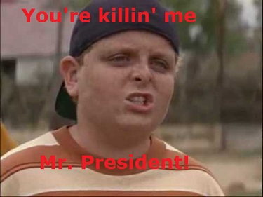 "A video has emerged of President Obama lifting tiny weights in a European hotel gym. You see, Obama needs to get in shape so that he can throw like a girl at his next baseball game."