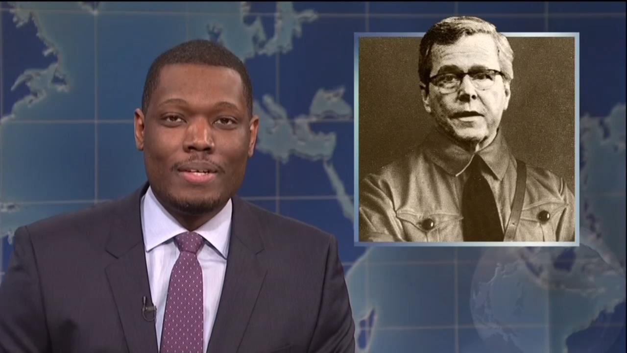 On Saturday Night Live, Weekend Update co-anchor Michael Che shamelessly mocked Jeb Bush after the Republican told the Huffington Post he would happily travel back in time to kill baby Hitler. Che claimed this move would have “left Germany in the weak bumbling hands of Adolph’s brother Jeb Hitler."