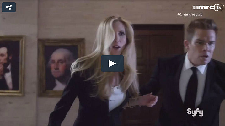 What you know you want to see, but didn’t want to spend two hours to catch: Ann Coulter’s scenes in Wednesday night’s SyFy channel debut of Sharknado 3: Oh Hell No! She’s the Vice President serving with the President played by Mark Cuban. A tour de force.