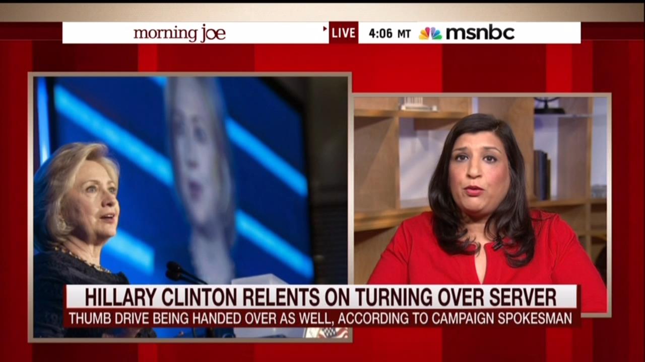 KUMAR: They're turning over two things and it is voluntary at this point. They've been asked by the committee – House committee looking into the Benghazi attacks in 2012 to turn over her server. She has not done it for months and yesterday they announced pretty late in the day that they’re gonna turn that over to the justice department. As of this morning, they have not done so yet. Yesterday, they did turn over a thumb drive that had e-mails, her e-mails on it, that her attorney had been holding onto.