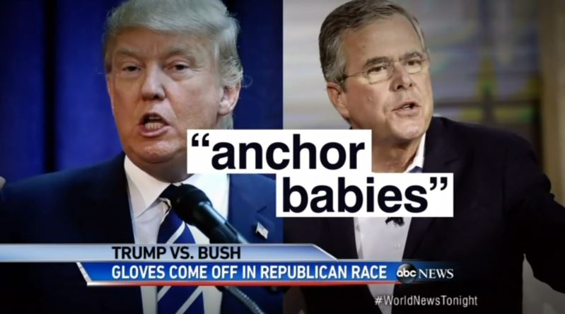 After highlighting how Bush and Trump had dueling events in New Hampshire the night before, Llamas hyped that “both candidates today [are] facing questions about why they use the term ‘anchor babies’ to describe American born children of undocumented immigrants.”
