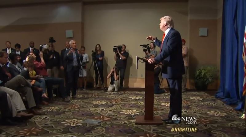 In the first major network news program since 2016 GOP presidential candidate Donald Trump sparred with liberal Fusion/Univision anchor Jorge Ramos at a press conference on the subject of illegal immigration, ABC’s Nightline was there to circle the wagons for their Disney partner and “America’s best known Latino anchorman.”