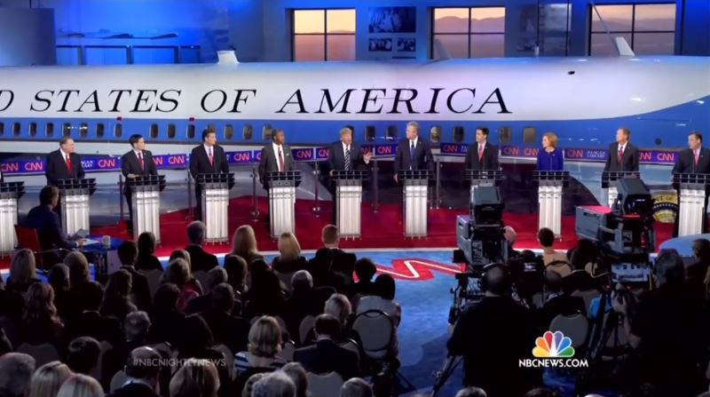 All three Thursday network evening newscasts led off with their respective recaps and analysis of the second Republican presidential debate, but NBC Nightly News stood out in proclaiming that the event “expos[ed] disconnects within the Republican Party” on issues such as Iraq in addition to defending Hillary Clinton from Fiorina’s “fierce attack” against her and Planned Parenthood.