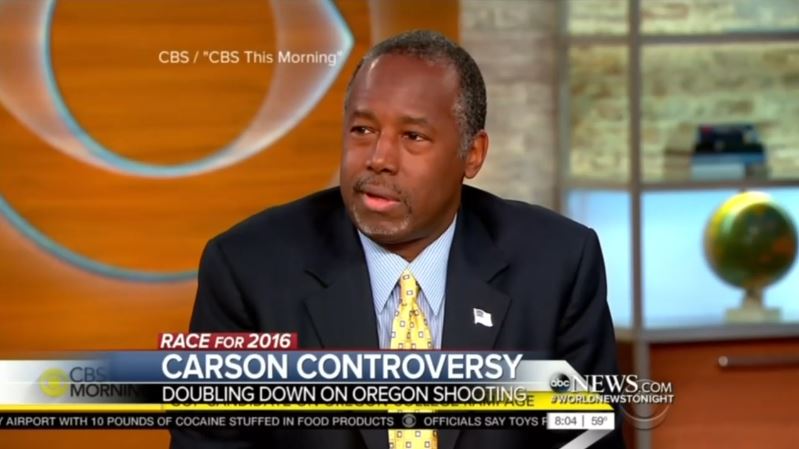 Following the heated interview on CBS This Morning, correspondent Julianna Goldman reported on the CBS Evening News that Carson “doubled down” on the morning show by “repeating the suggestion that victims of last week's mass shooting at an Oregon community college could have done more to protect themselves.”