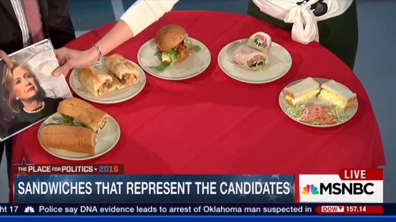In another example of the media doing something that’s silly and bordering on the absurd, Wednesday’s edition of MSNBC Live with Kate Snow ended with a three-minute-plus segment comparing each of the 2016 Democratic presidential candidates to different types of sandwiches with Hillary Clinton being a Subway sandwich and Jim Webb resembling an egg salad sandwich.