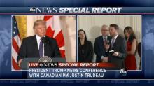 For President Trump’s third joint press conference with a foreign leader, the President skipped over the major broadcast networks, cable networks, liberal newspapers, and wire services on Monday with Canadien Prime Minister Justin Trudeau. In lieu of those outlets, he called on Sinclair Broadcasting Group and The Daily Caller.