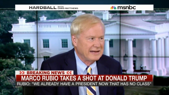After all these years, Chris Matthews still hasn't lost that lovin' feeling. The MSNBC host spent a total of 2 minutes and 12 seconds hitting Florida Sen. Marco Rubio (R) for a line comparing Donald Trump to Barack Obama saying that neither of them exhibit "class."