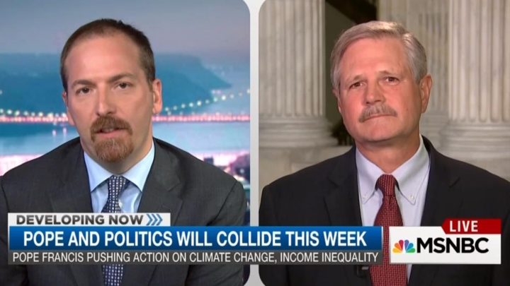 Filling in for Chris Matthews on Hardball tonight, NBC's Chuck Todd noted at the open of the program that Pope Francis's U.S. visit would likely yield moments where he speak out to the discomfit of both Republicans and Democrats on certain policy issues. Yet Todd himself didn't seek the emulate such balance when he interviewed Catholic senators Maria Cantwell (D-Wash.) and John Hoeven (R-N.D.).