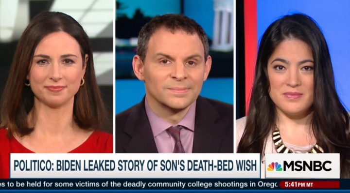 At this point, Time magazine's Jay Newton-Small chimed in by comparing Biden's potential to tie in a 2016 run to his son's dying wish with how other politicians like former North Carolina Democratic Sen. John Edwards have campaigned in no small part on the narrative of personal tragedies:
