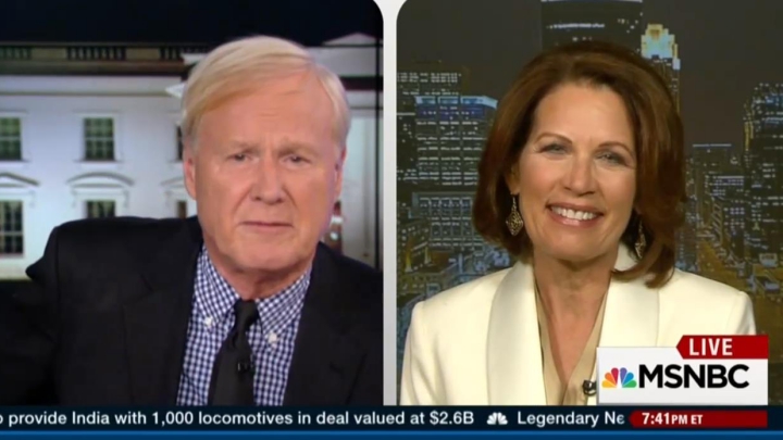 As you can see, Matthews is much kinder and gentler with Bachmann now that she's no longer active in electoral politics. You may recall that in December of last year, Matthews fired a parting shot at the departing congresswoman and her entire congressional district for repeatedly sending her to Washington.