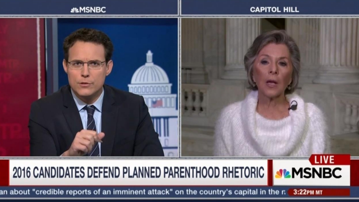 On the Nov. 30 edition of MSNBC's MTP Daily, pro-abortion rights absolutist Sen. Barbara Boxer was given free rein to draw a line connecting pro-life rhetoric with Friday's fatal shooting at a Colorado Springs Planned Parenthood abortion clinic. While guest host Steve Kornacki meekly asked the California Democrat if she saw a connection between the two, he failed to chastise her for smearing a significant plurality, if not majority, of Americans who consider that, yes, abortion does end a human life and hence amounts to killing babies.