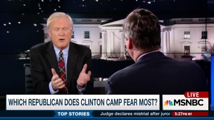 December 16, 2015; 7:27 p.m. EasternCHRIS MATTHEWS:: Let me ask you, is this it? Who is she most afraid of, do you think? Hillary. Of all the candidates.