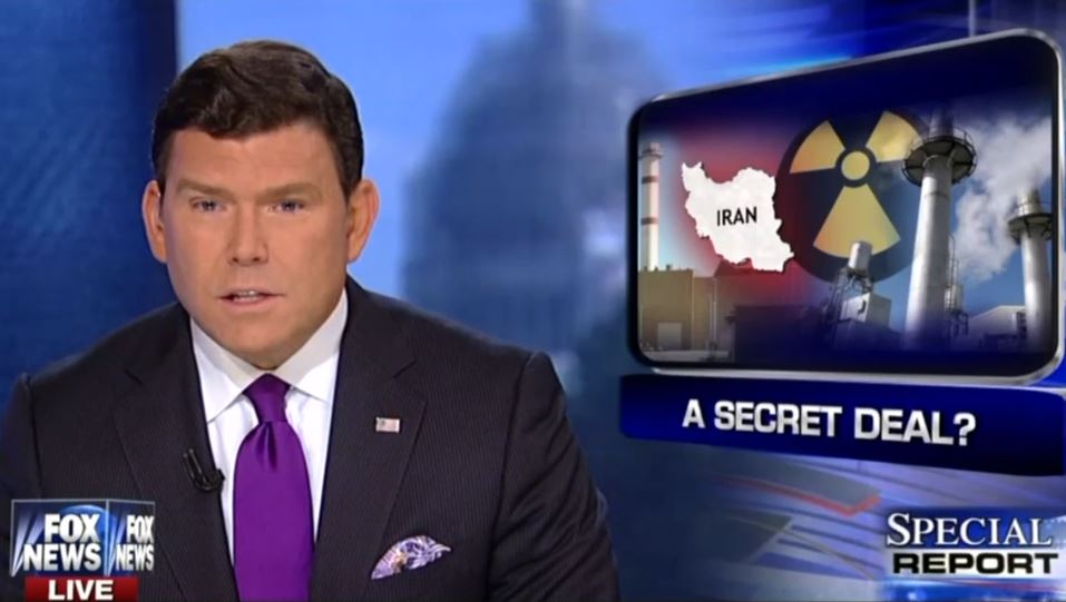 By contrast, Fox News’s Special Report led with the breaking news that evening as anchor Bret Baier informed viewers: “As President Obama continues to both court and mock critics of his legacy-shaping nuclear agreement with Iran, there is word tonight of a separate covert deal between the Islamic Republic and the U.N.’s nuclear team. Two of them, in fact, that are not going to be shared with members of Congress nor with you.”