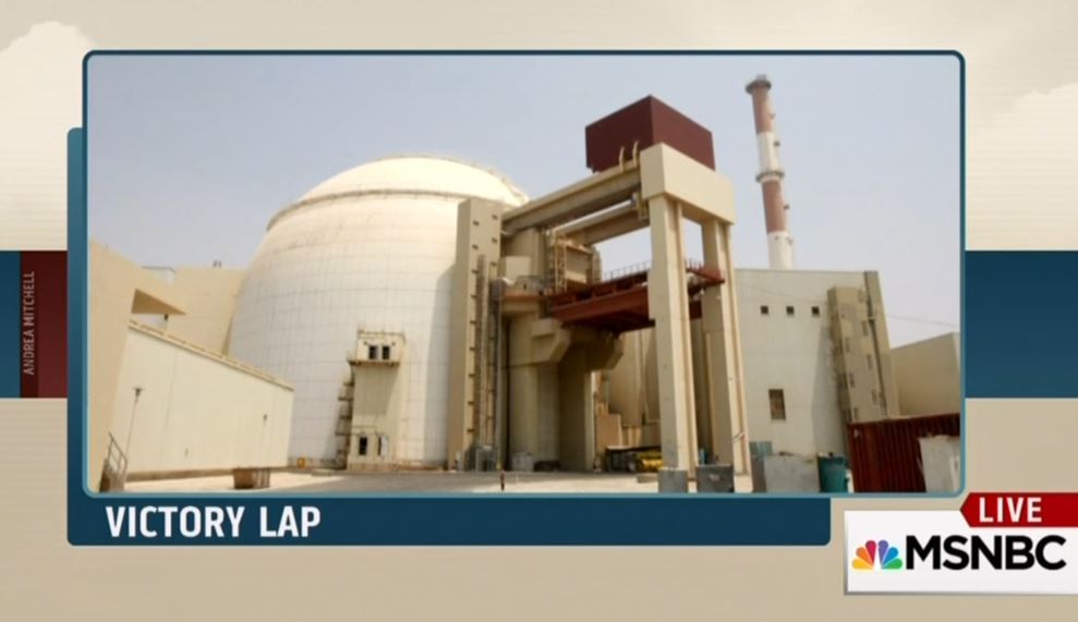 That restrained coverage lasted until Andrea Mitchell took over at 12 p.m. ET and heralded: “Victory lap. The White House hits the magic number today, enough Senate votes to sustain Iran deal. In Philadelphia today, Secretary of State Kerry vigorously defending the deal from critics, especially Israel.”