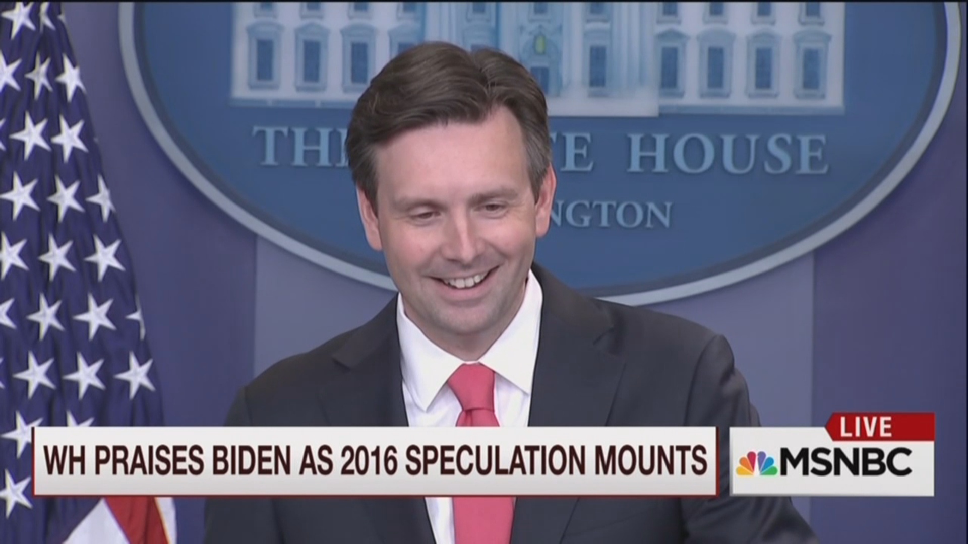JOSH EARNEST: The president has indicated his view that the decision he made I guess seven years ago now to add Joe Biden to the ticket as his running mate was the smartest decision he ever made in politics. And I think that should give you some sense of the president's view of Vice-President Biden's aptitude for the top job.