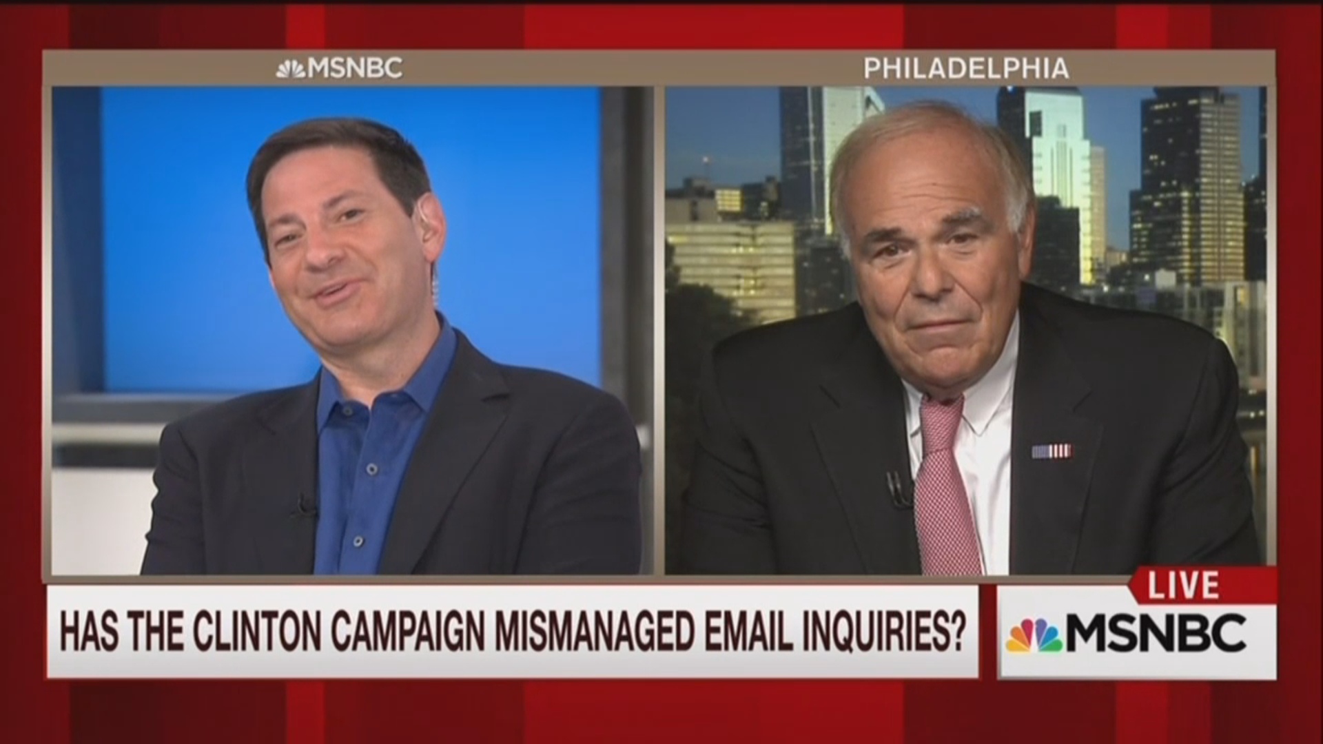 ED RENDELL: I said in there about there's nothing they can do. They have to wait until all of these investigations are over. And it's my belief that it will find that there's nothing that was marked classified at the time that she either received or sent out . . . The State Department has already said that nothing that they sent out or received was marked classified . . . Other secretaries of state have done it. She was in accord with the policies and regulation that were in effect when she was Secretary of State. If none of it turns out to be classified documents that were harmful to the country, then she may have used bad judgement and she's acknowledged that. But where's the problem here?